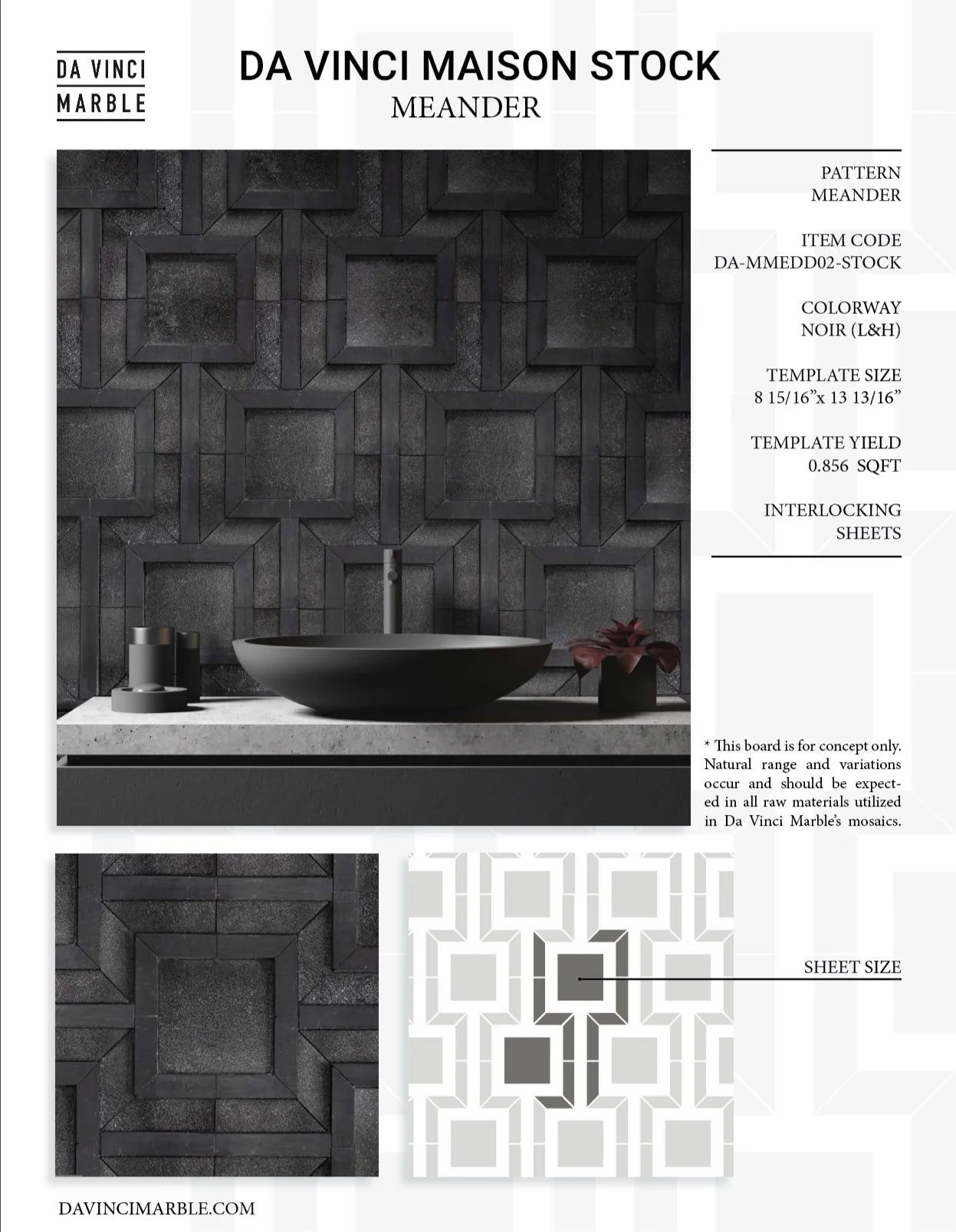 A project for Da Vinci Marble involving the design of spreads that detailed product specifications in an aesthetically-pleasing and easily understandable format to streamline the purchasing process.