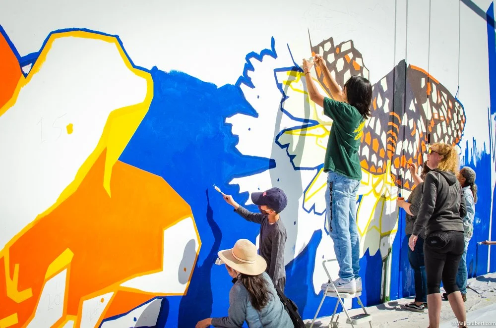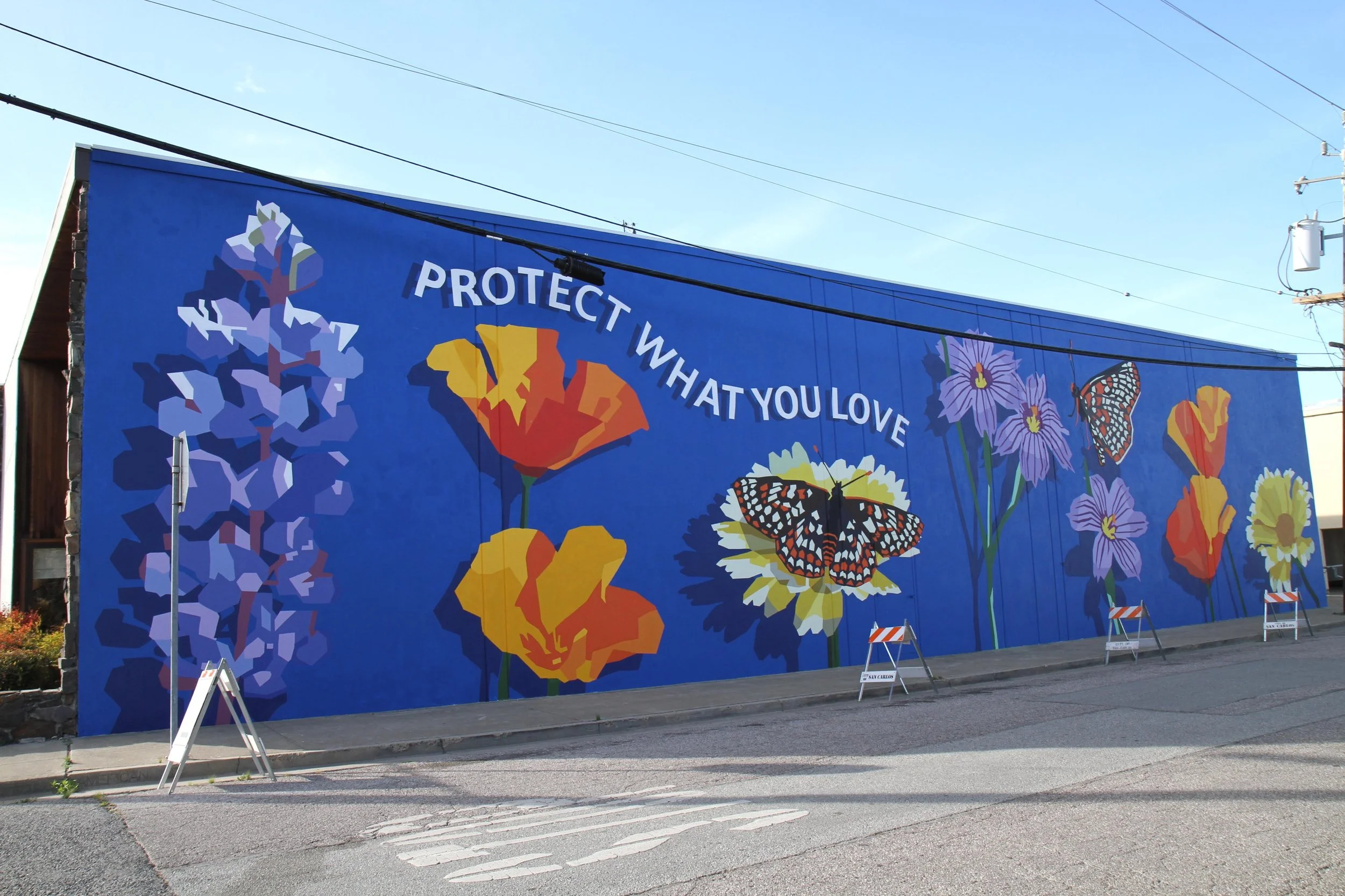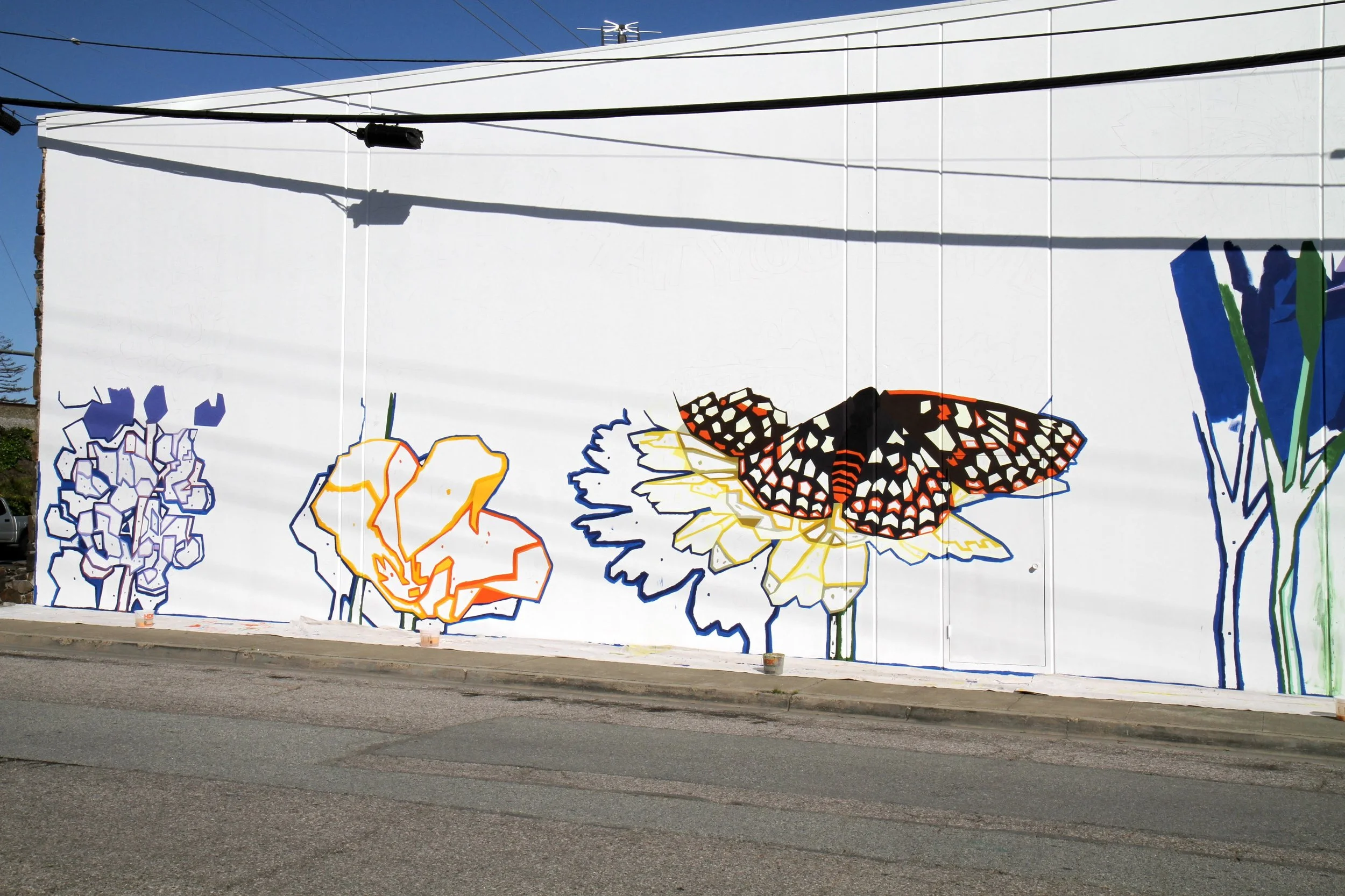The “Love More” mural highlights five native species, most notably the endangered Bay Checkerspot butterfly. It is not only adds vibrancy to San Carlos's industrial arts district, but is also visible from every northbound train, spreading our message to all passersby.
